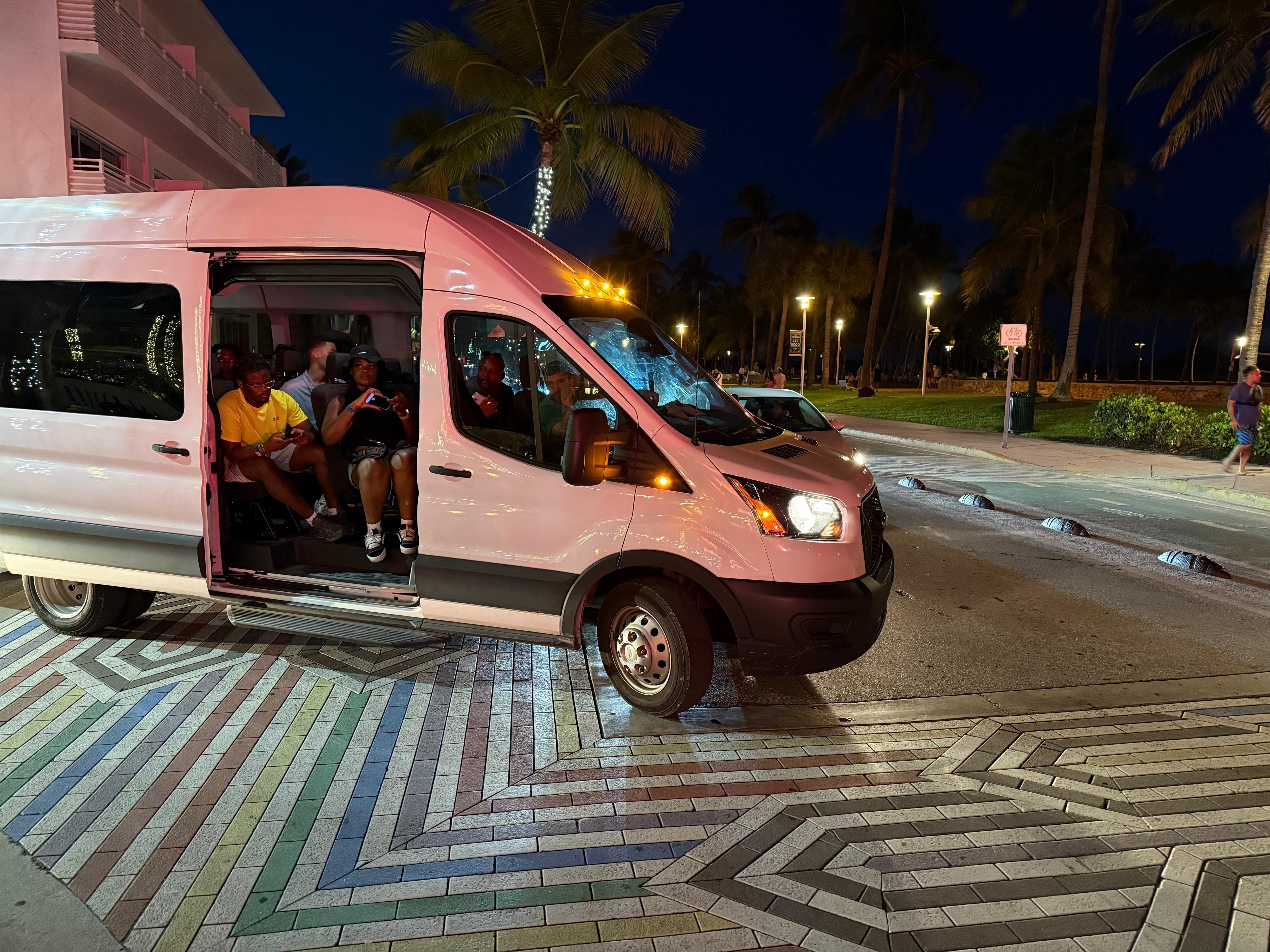 - 🕺 Tour guide walks alongside the moving bus on Ocean Drive for a one-of-a-kind live show feel