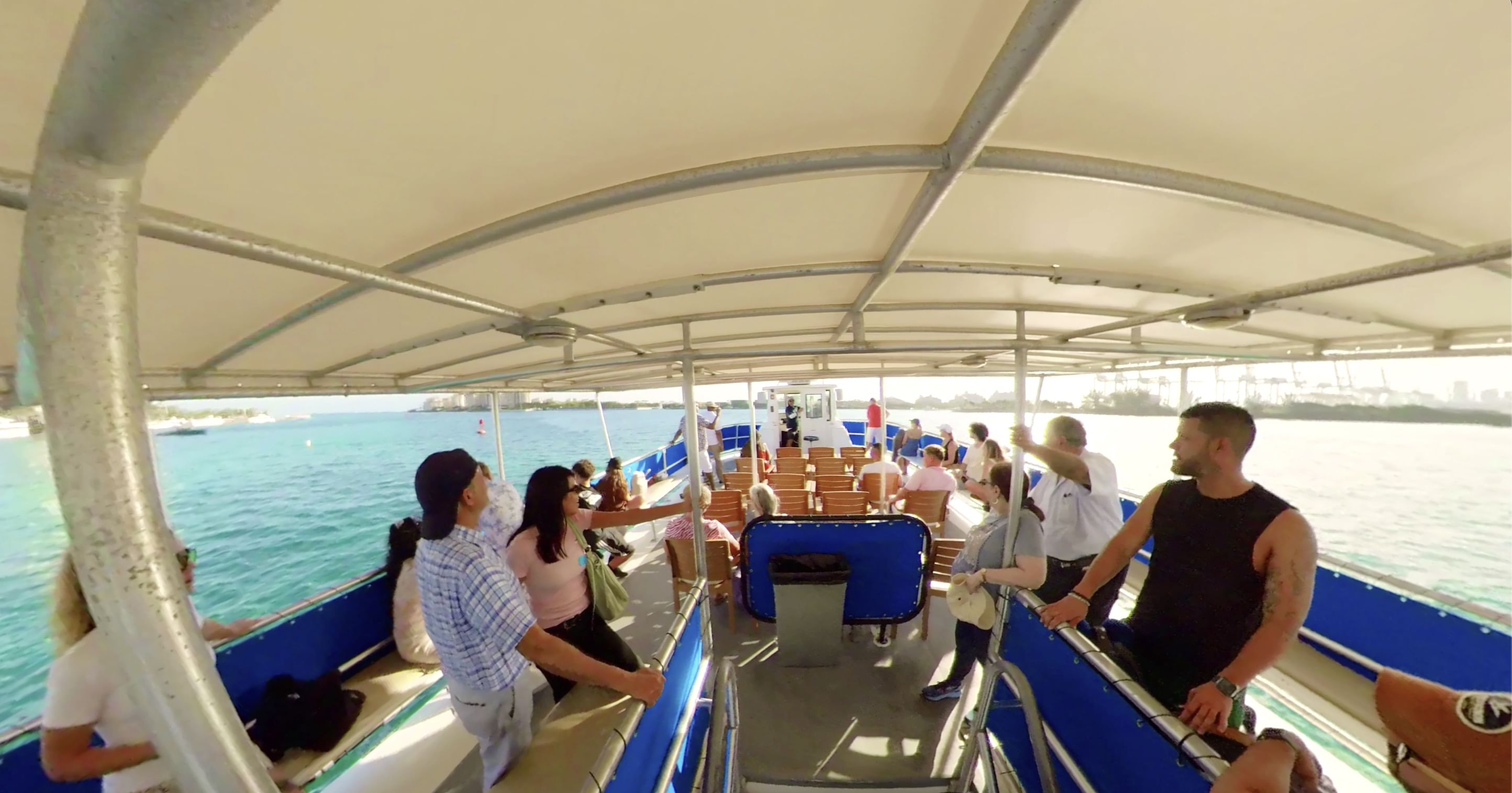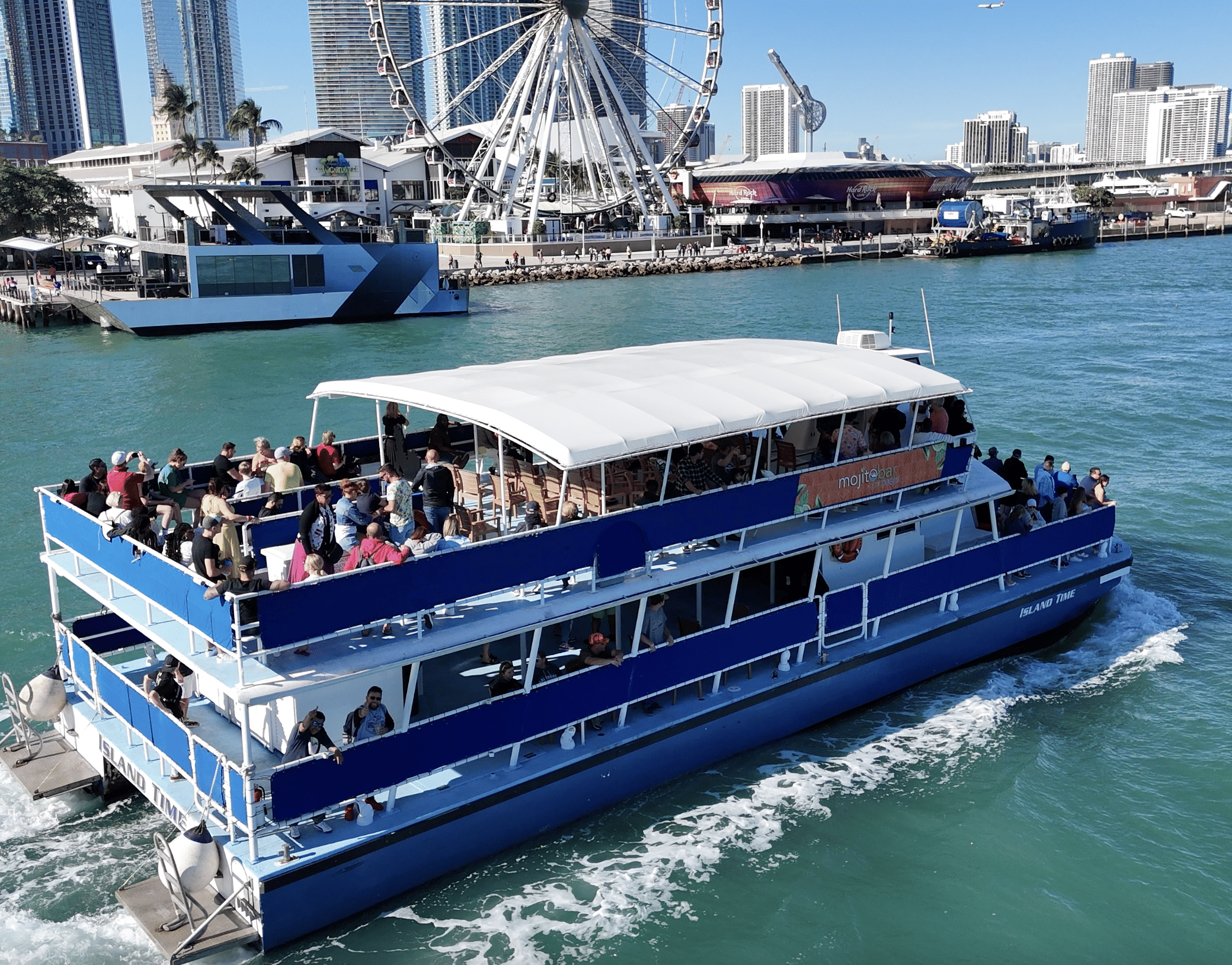 Once you've boarded, you're invited to the open-air top level, where striking panoramic views of the city and spectacular views of Miami from the water await. The upper deck is the perfect spot to immerse yourself in the vibrant atmosphere and breathtaking scenery.